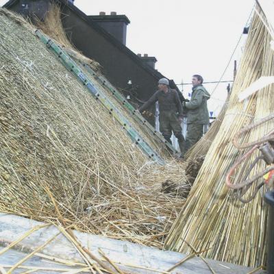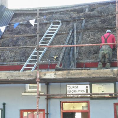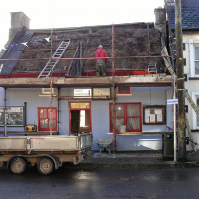 Kildorrery Community Development was determined to preserve the original appearance of the building. The thatch structure, which existed beneath the corrugated roof, preserved a dimension of this vernacular dwelling that had long since been lost in the Kildorrery streetscape. The reversion to thatch has added heritage value to the building.